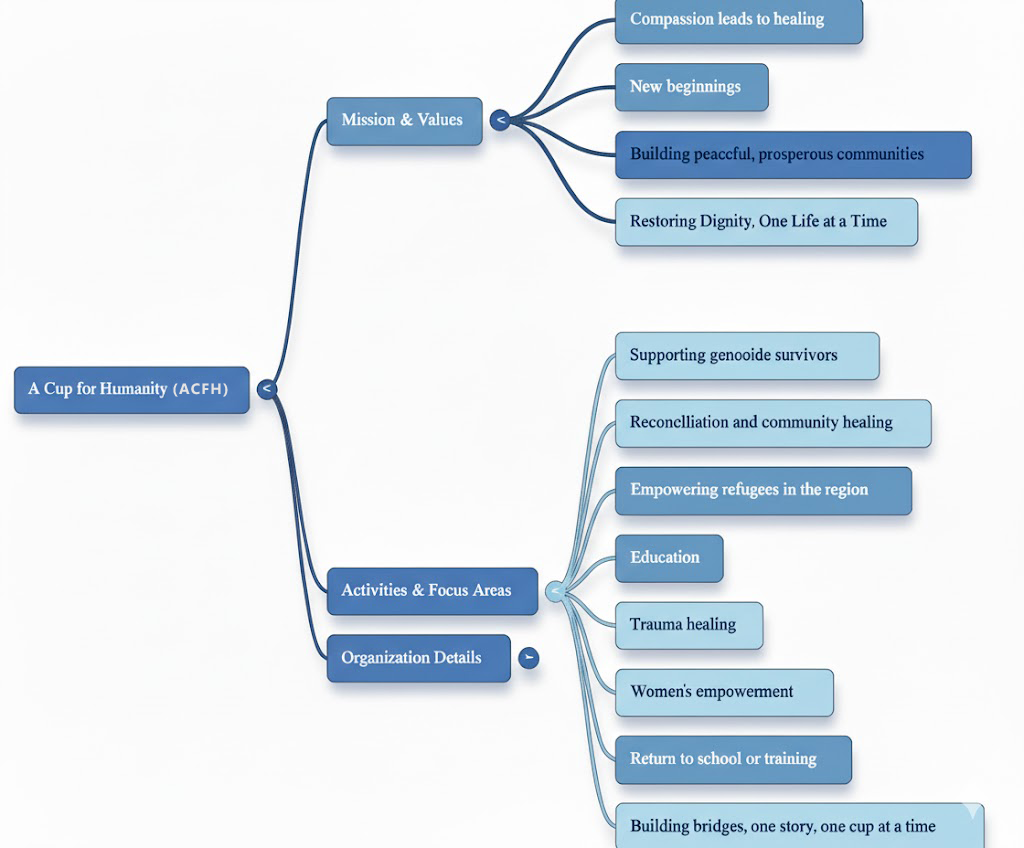 Overzicht In juni 2025 faciliteerde A Cup for Humanity twee trainingen in ‘Community based trauma healing’ in Nyamata en Huye. Het belangrijkste doel was het